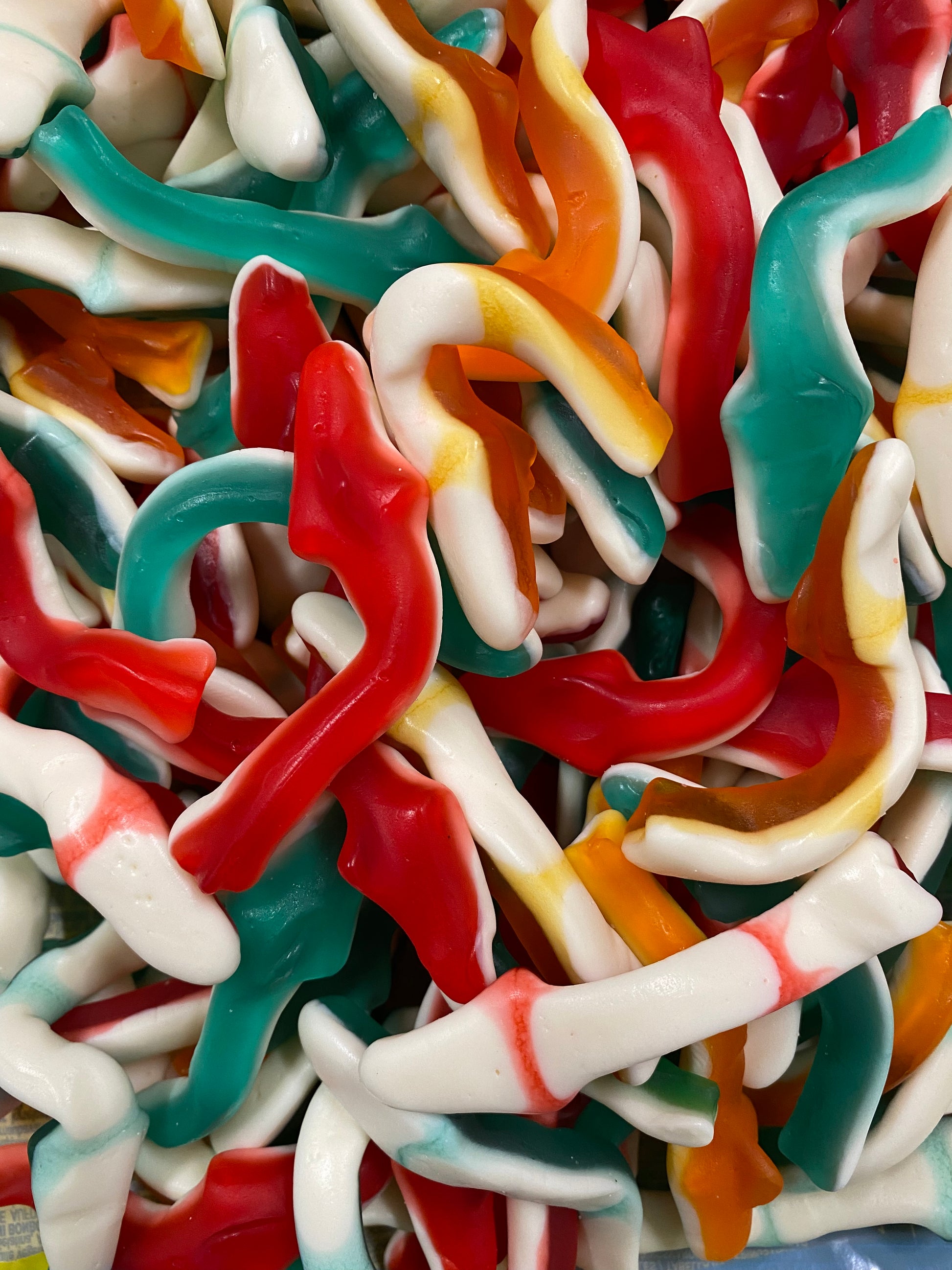 This nice assortment of red, blue and yellow sharks will leave you looking for a fruity shark attack at anytime!