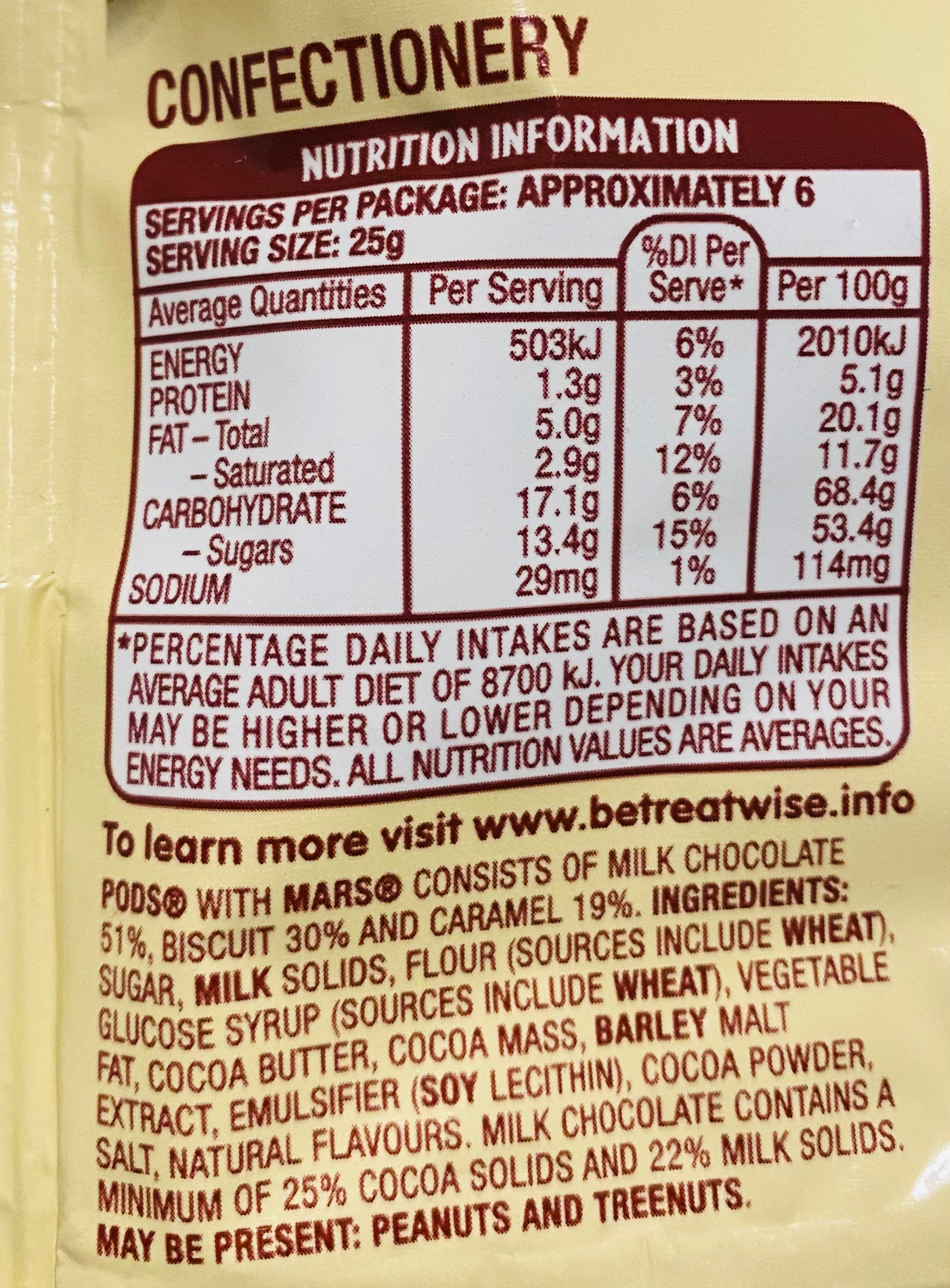 Deliciously rich Mars caramel cradled in a crispy baked wafer, topped off with creamy milk chocolate.