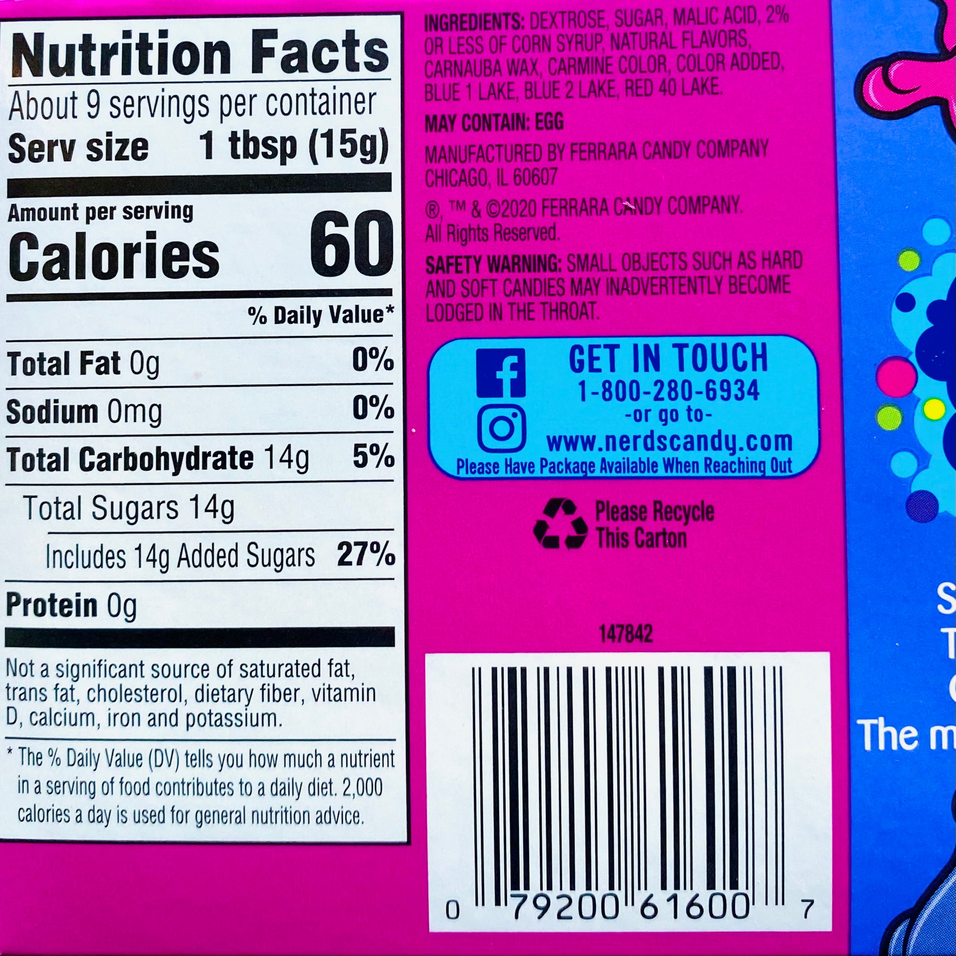 Nerds provide a delicious assortment of Fruity flavors in vibrant colours. They're an awesome way to satisfy your cravings, & great for sharing with a friend!