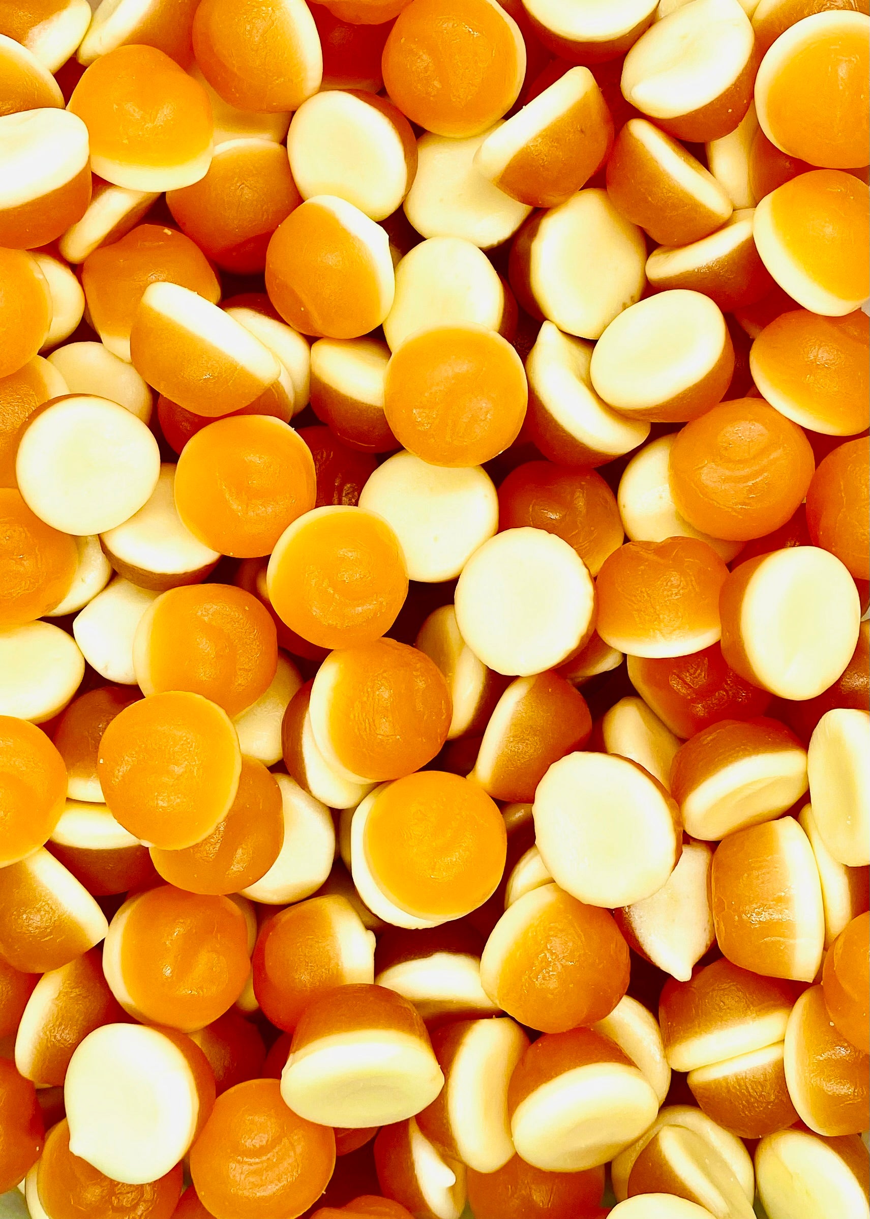 These soft and chewy peaches and cream flavoured lollies are just divine! These gummies have a smooth and creamy texture and are perfect for a fruity snack.