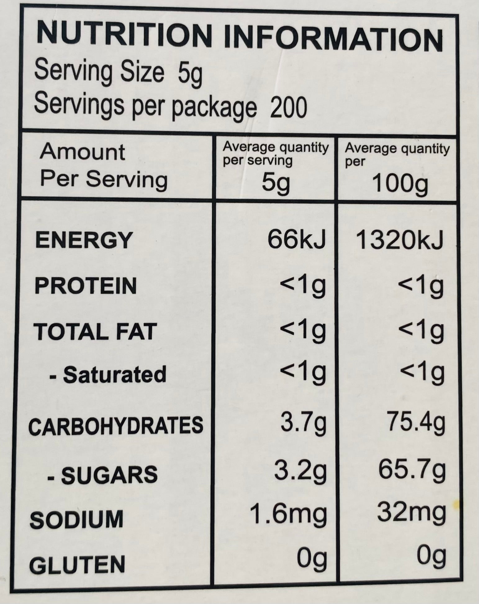 Ingredients: Sugar, Liquid Glucose: (Corn Syrup), Gum Base, Dextrose: (Glucose Powder), Food Acid: (330), Flavour, Humectants: (422, 420), Vegetable Oil, Colour: (129)