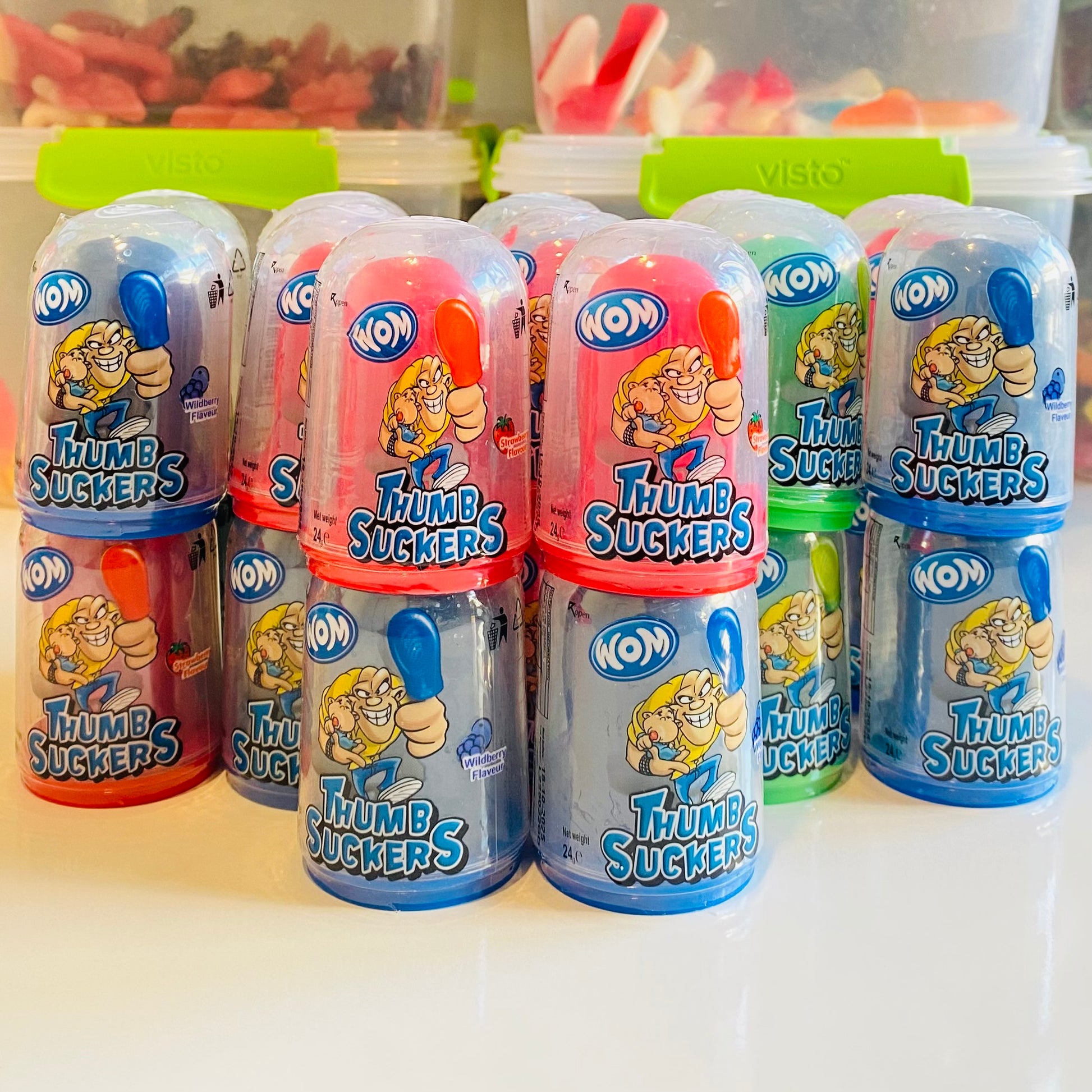 Indulge in the delicious Apple, Strawberry, and Wildberry flavors of our Wom Thumb Suckers! These lollipops are perfect for satisfying your sweet tooth, while also providing the sensory satisfaction of sucking on your thumb. Say goodbye to stress and hello to a tasty treat!